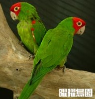 紅面具錐尾鸚鵡(紅頭太陽)與米特雷相似,但頭部紅色面積較廣,體型則較小,可愛的模樣十分討喜,分佈地區不廣,棲息地破壞及捕捉作為活體出售使的數量有下滑的趨勢,但在國外鸚鵡養殖業中仍屬普遍,能學會重複一些人話。