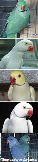 環頸鸚鵡(月輪)是台灣最常見中型鸚鵡,一般在鳥店看到的綠色月輪成鳥都是來自野外的野生鳥,一般鳥店都會將一大群關在一起,黃、藍、白色則是較常見的變種,環頸鸚鵡的變種非常多,在野外的變種已不少,然而在人工養殖經基因改造後變種更多,各種顏色的變種價格也都不盡相同,但市面上少見的變種不多,一些珍奇的變種價格往往十分地高,飼養容易,幼鳥也常見,是入門者可考慮的選擇之一,鸚鵡養殖業中數量很多,野外數量也不少,分佈的面積非常廣闊,環頸鸚鵡是十分普遍的種類,有4種亞種。